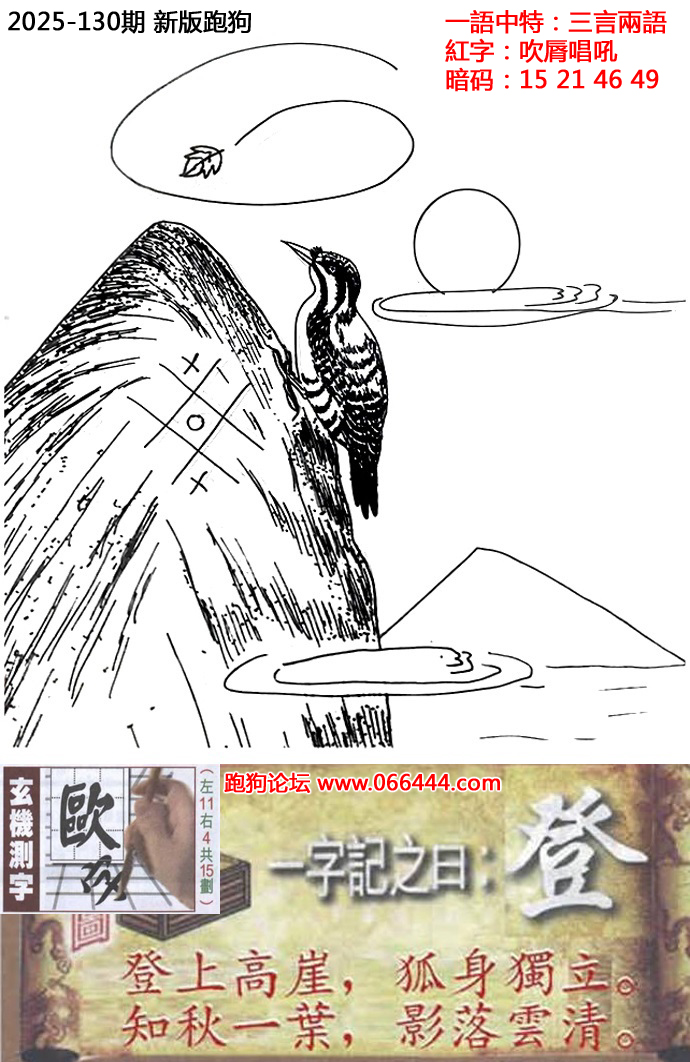 130期六合皇信箱红字【吹脣唱吼】《暗码:15 21 46 49》开