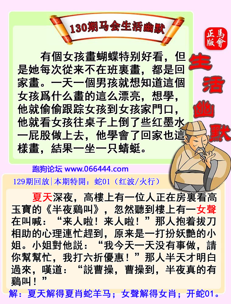 130期:【今日闲情】【蛇蛋图】【福利传真】【馬會傳眞】 跑狗出版社 『跑狗论坛:www.444024.Com
